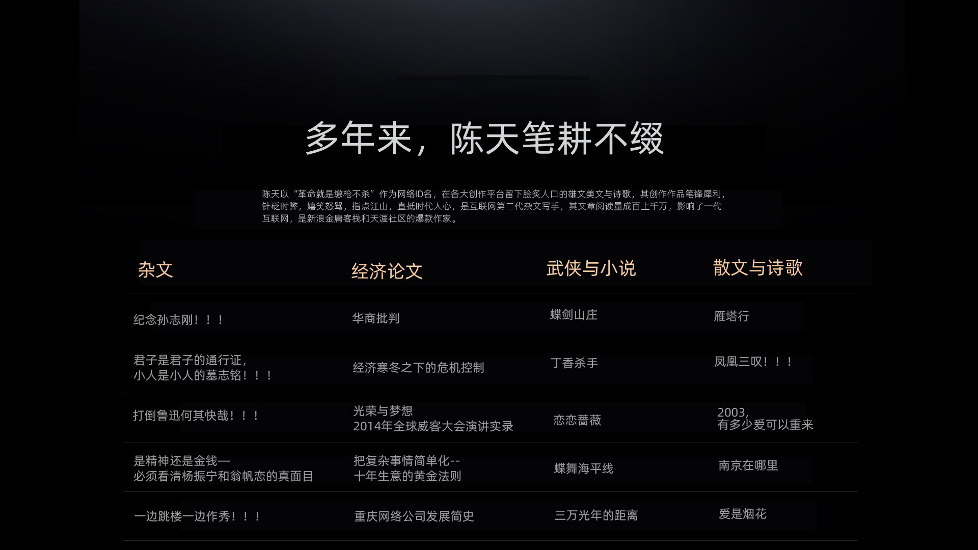 14年前,陈天只身一人来到重庆,创办了一家名叫“光荣网络”的公司,提供网站建设等服务。
